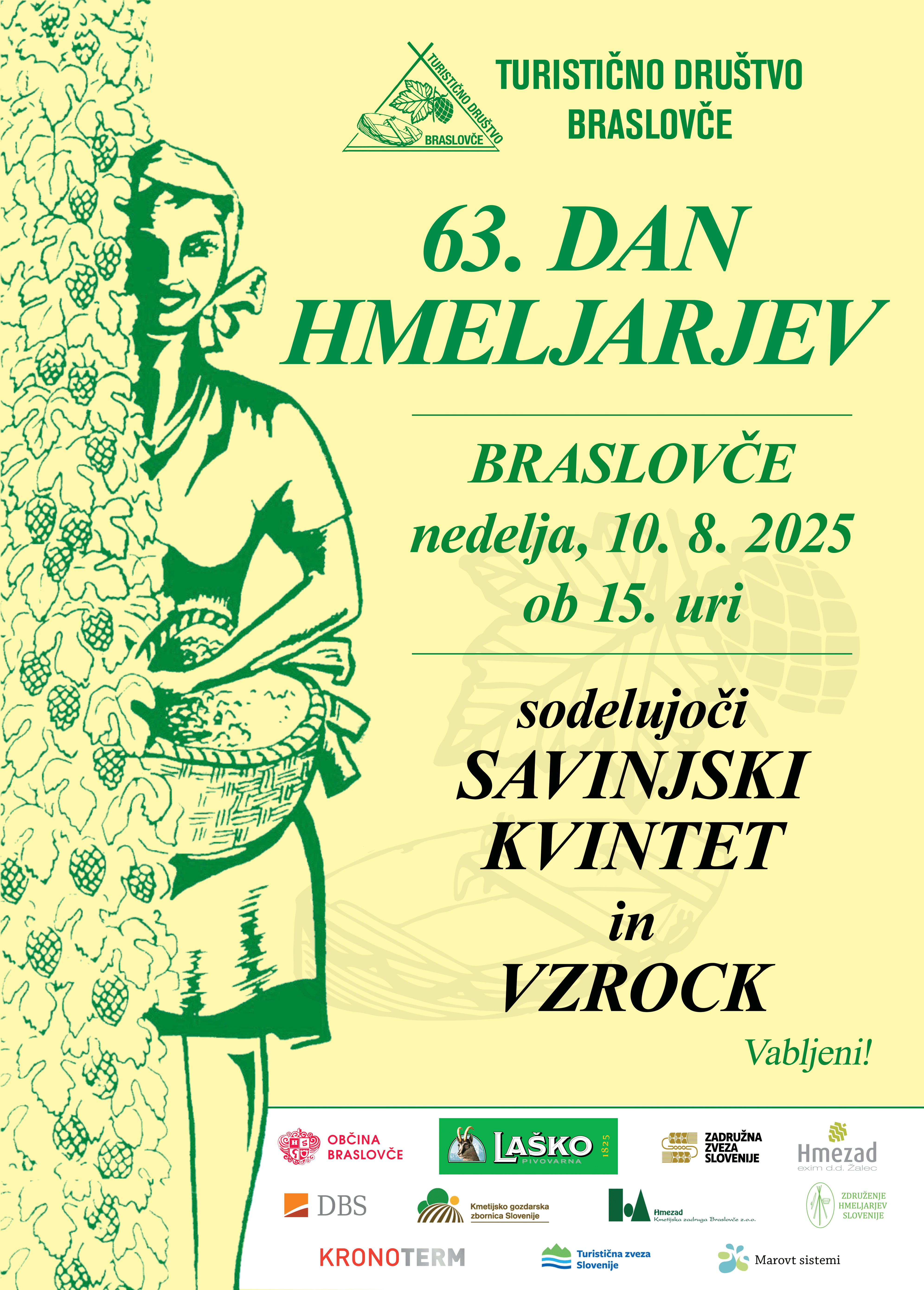 Vabljeni v Braslovče na DAN HMELJARJEV 0.0 Zadnja posodobitev: -/- Sorodne Novice: Žalec - Naj kraj, hiša, kmetija 2025 BOŽIČNI VOJNIK 2025 JESEN NA GRILOVI DOMAČIJI 2025 Prebold - Noč čarovnic 2025 Prebold - Naš kraj lep in urejen 2025 HOLCERIJA 2025 DOBRINSKA NOČ 2025 Poletje na Grilovi domačiji 2025 Škalska pravljica 2025 VODNE IGRE 2025 0 Dan Hmeljarjev