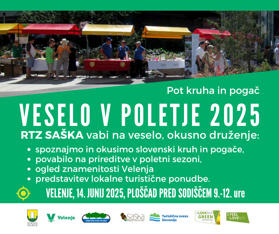14.6.2025 med 8 in 12 uro RTZ SAŠKA organizira osrednjo prireditev VESELO V POLETJE pod nazivom "POT KRUHA IN POGAČ"